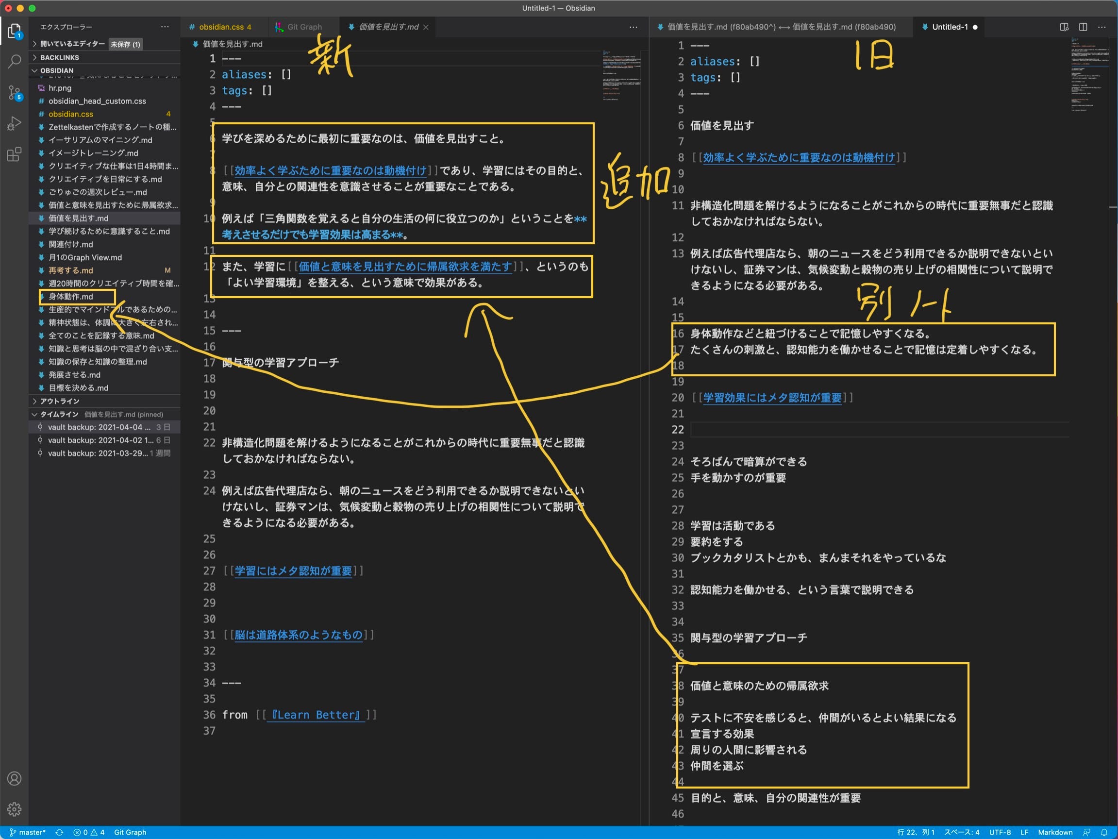 で、そんな『Learn Better』なんですが、この本のごりゅご評価が大きく上がった理由の1つが、Obsidianの存在というか、本の内容をObsidianを使ってまとめたことで理解が深まり、それで面白さがよくわかった、ということなのではないかと思っています。