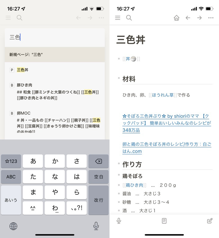 特定のノートを検索して見つけるというシンプルな使い方では、多機能でいろいろなことができるObsidian mobileよりもLogseqの方が快適なことが多い。
