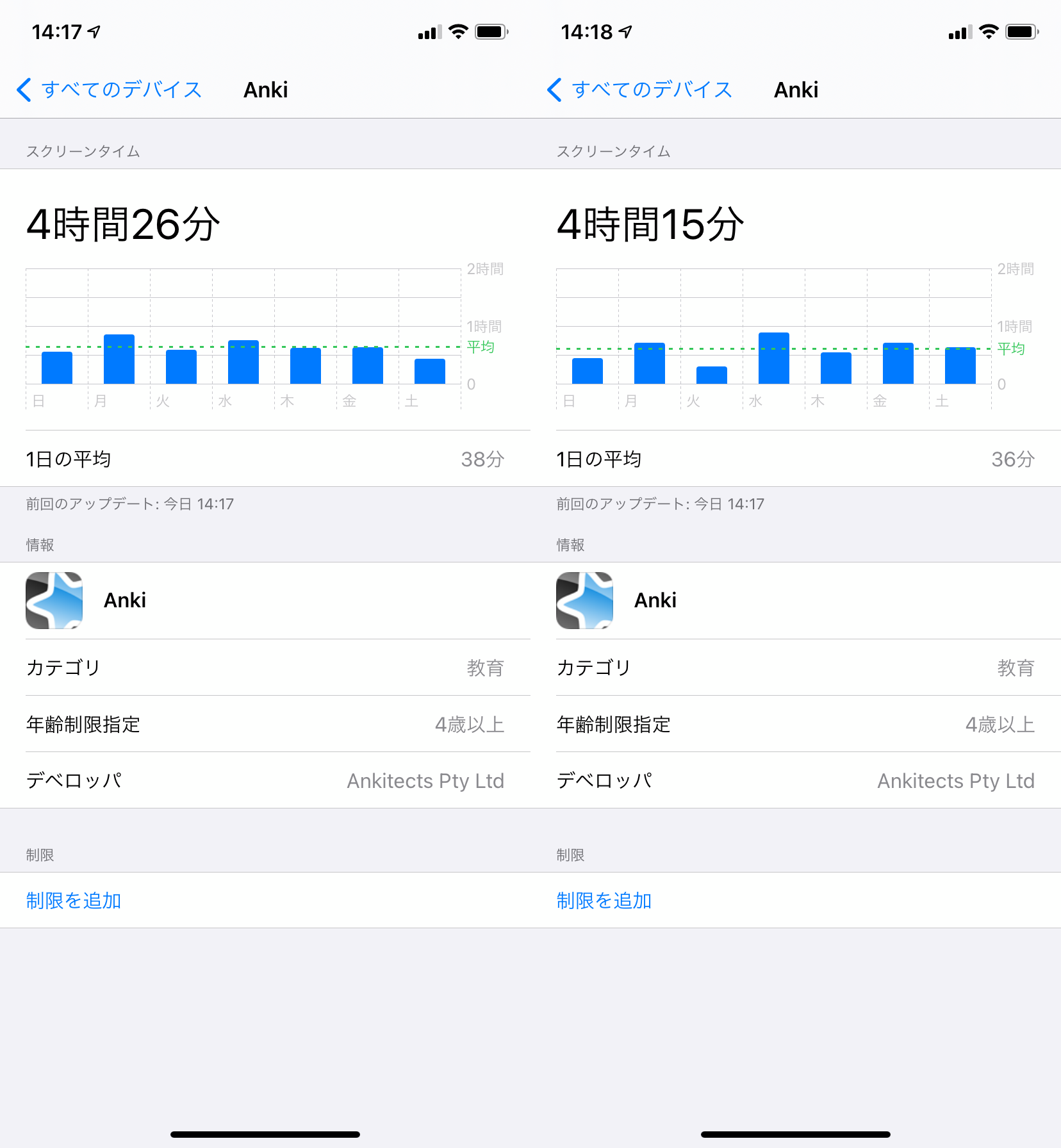 ついでに言うと、1日どのくらい勉強してるかというのも、iPhoneのスクリーンタイムでほぼ正確な時間がわかります。