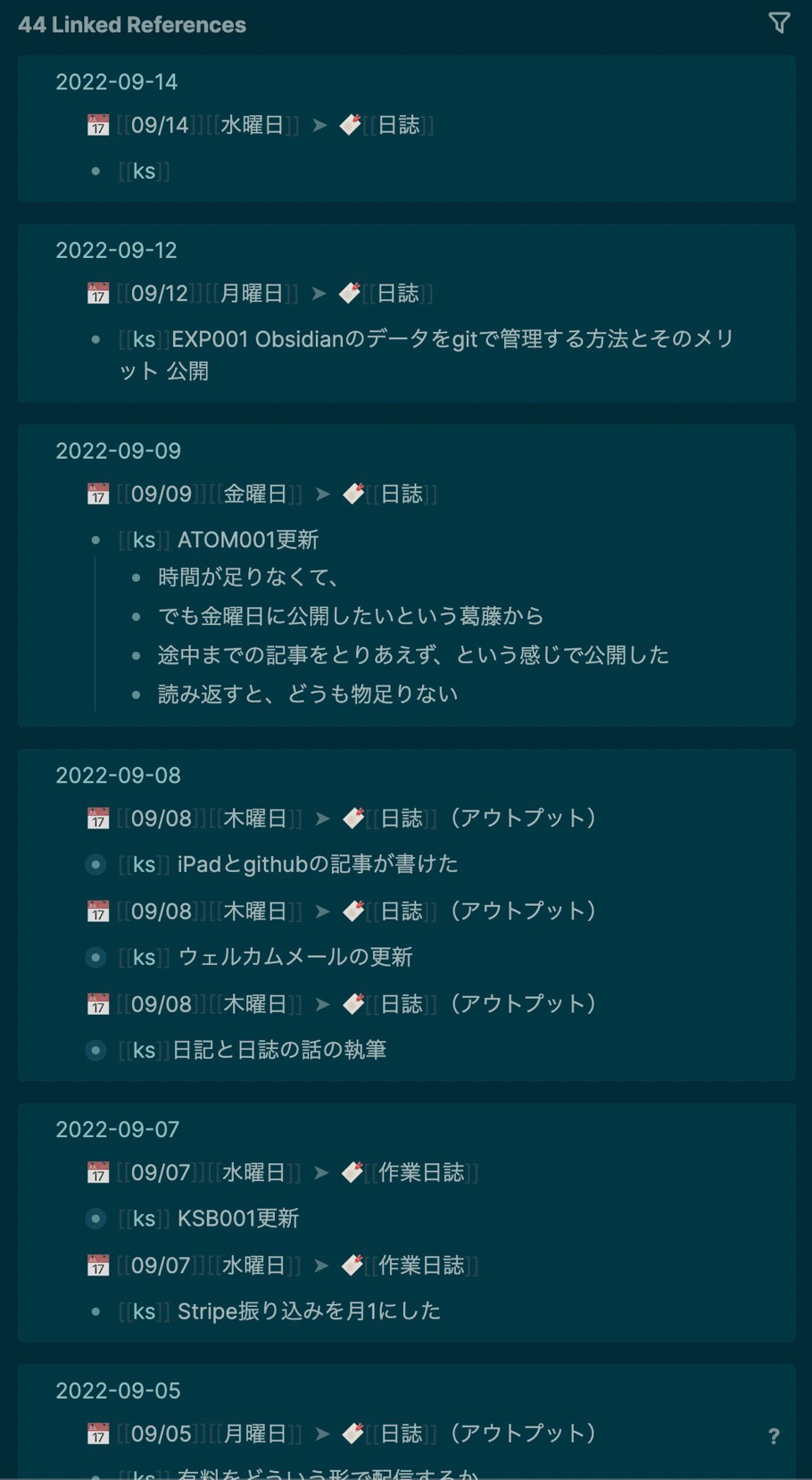 LogseqやDayOne、Obsidianに具体的にどういう形でどういうノートを残しているのか。「アトミックノート作りの前段階」としてそれぞれ順番に紹介しようと思っているんですが、たぶん一番多くの人に役に立つのがLogseqに作業日誌を残す、という方法です。