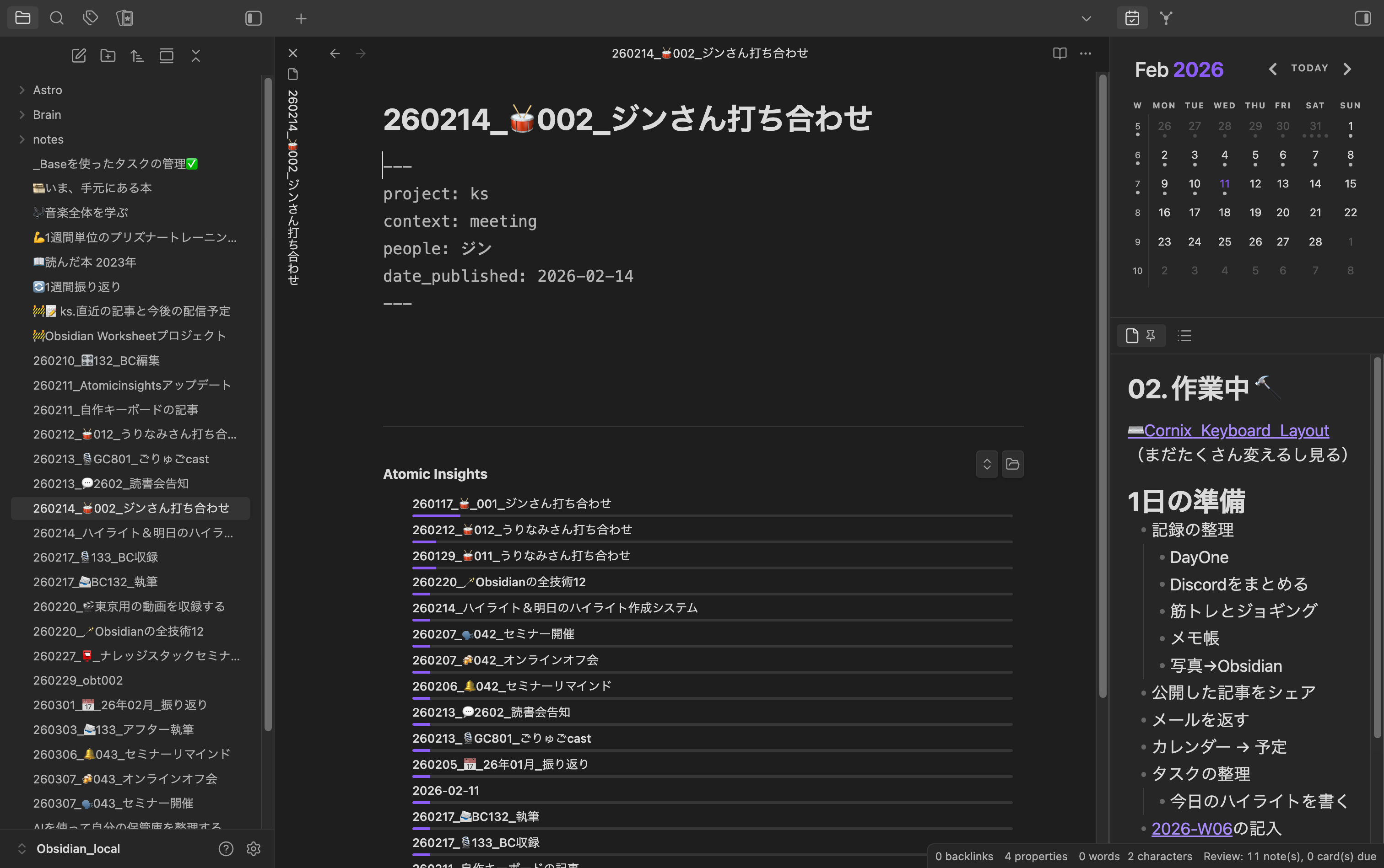 そういう意味で、これまでナレッジスタックで紹介しているような「アトミックノート」だとかObsidianの全技術シリーズで紹介しているようなごりゅごの「Obsidian仕事術」的な運用をされている方には、だいぶ便利なツールになるのではないかと思います。