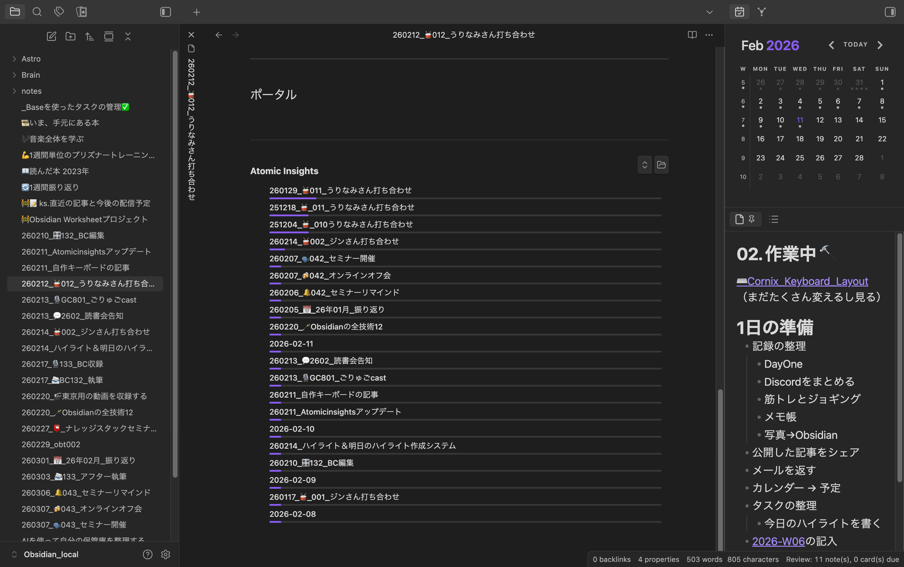 (少し古いですが)Frontmatterやプロジェクト管理など、ごりゅごのObsidian運用スタイルの全体像を解説しています。