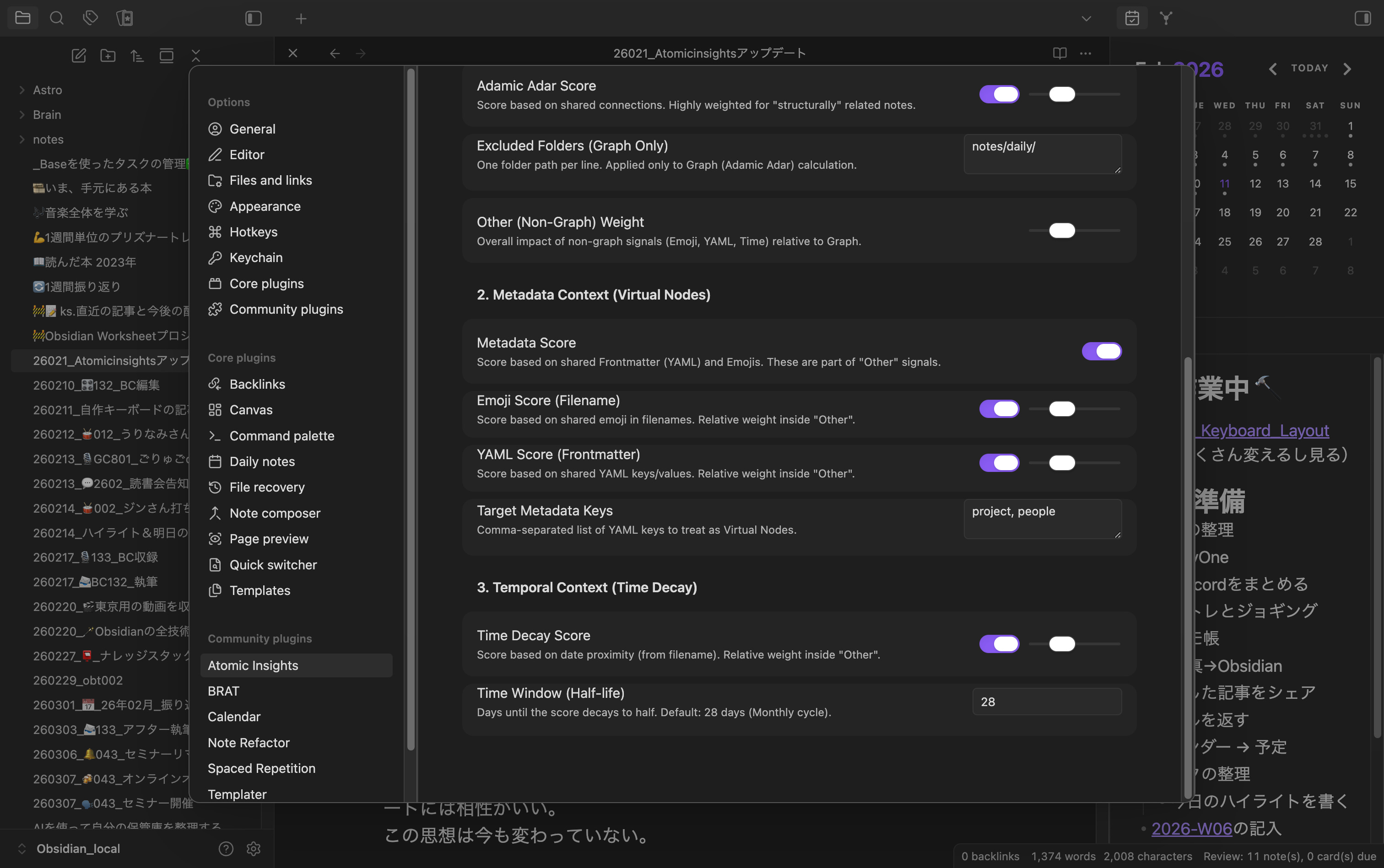 💎Obsidianプラグイン Atomic Insightsのアップデート