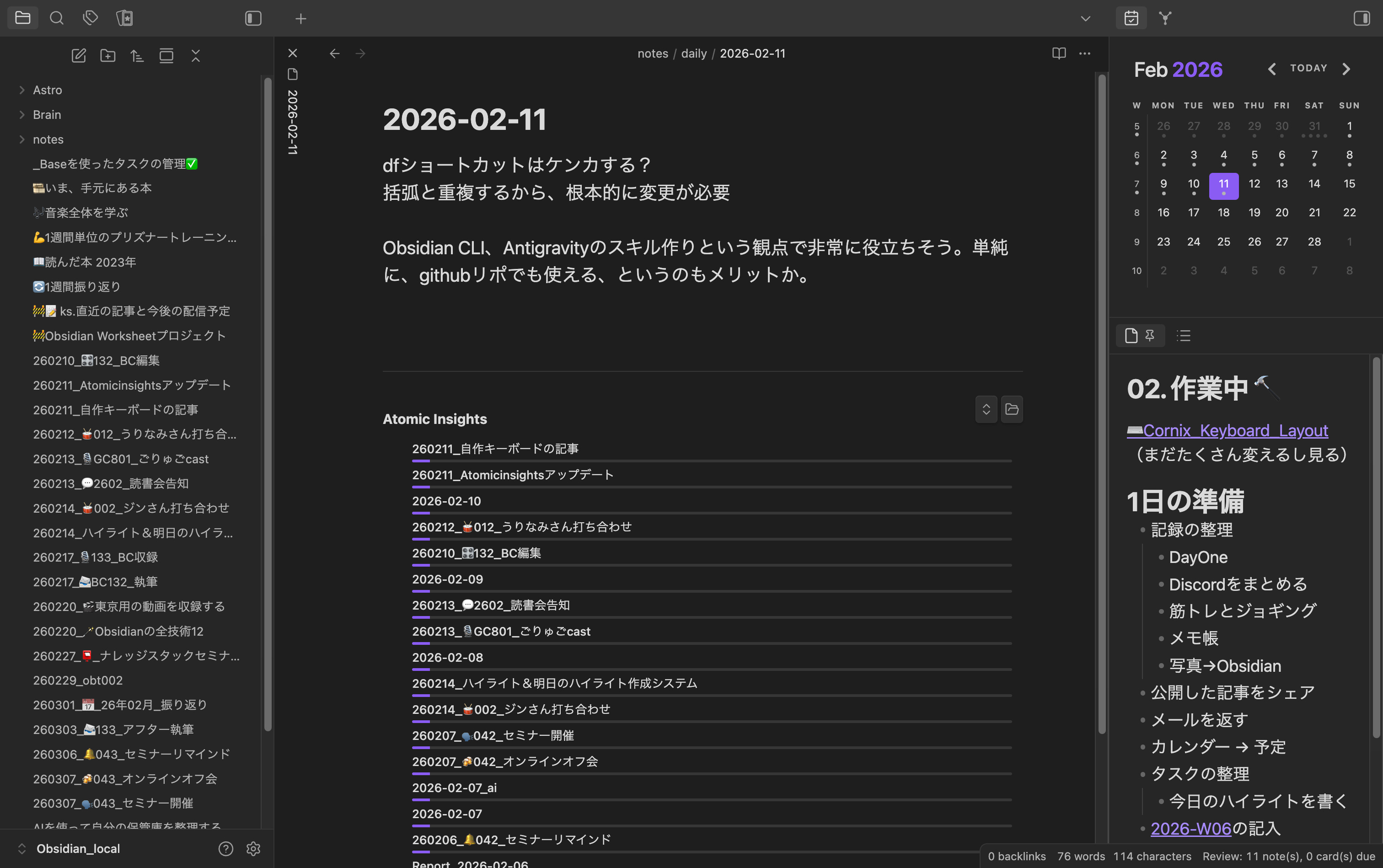 今回のアップデートによって、Atomic Insightsは「アトミックノート」「普段使う仕事ノート」「デイリーノート」という(自分が使う)あらゆるノートでいい感じに関連ノートを表示してくれます。
