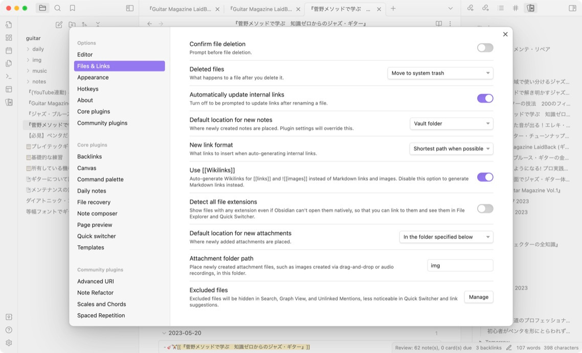 Obsidianの新しい保管庫を作ろうと思う前にAppleのメモ帳に残していた音楽関連のノート。これを、手動で移し替えていきました。