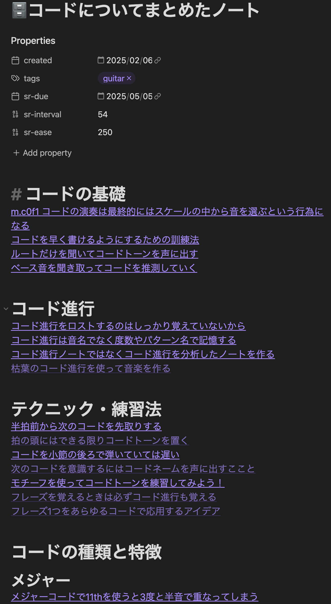 自分でも超面白いんだけど、こうやって「コードに関するノート」を集めても上手くいかないんだけど「コードに関係しそうなノートのかたまり」を作っていけば、さほど無理なく、わりと自然に「かたまり」を作ることができてしまっているんです。