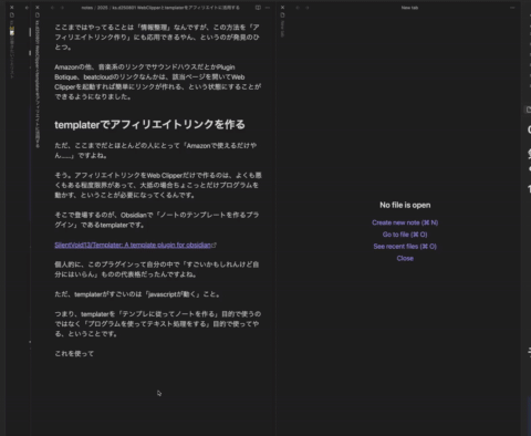 今回の主題はは「Obsidian Web Clipper」とか、Obsidianのプラグイン「templater」を使ってあげると、アフィリエイトのリンクにも大いに役立つんではないか、というアイデアの紹介と、それに伴う「生成AI時代での知識の重要性」という話です。