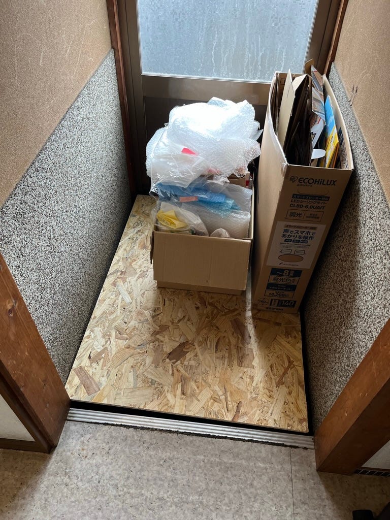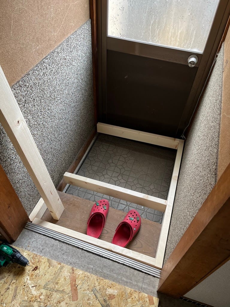 今回実施したのは、古い家によくある勝手口(まったく使っていない)の段差を無くし、スペースとして有効活用しよう、というもの。