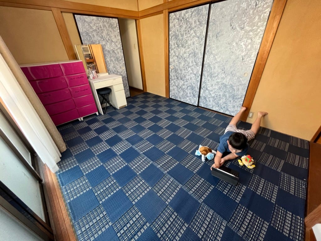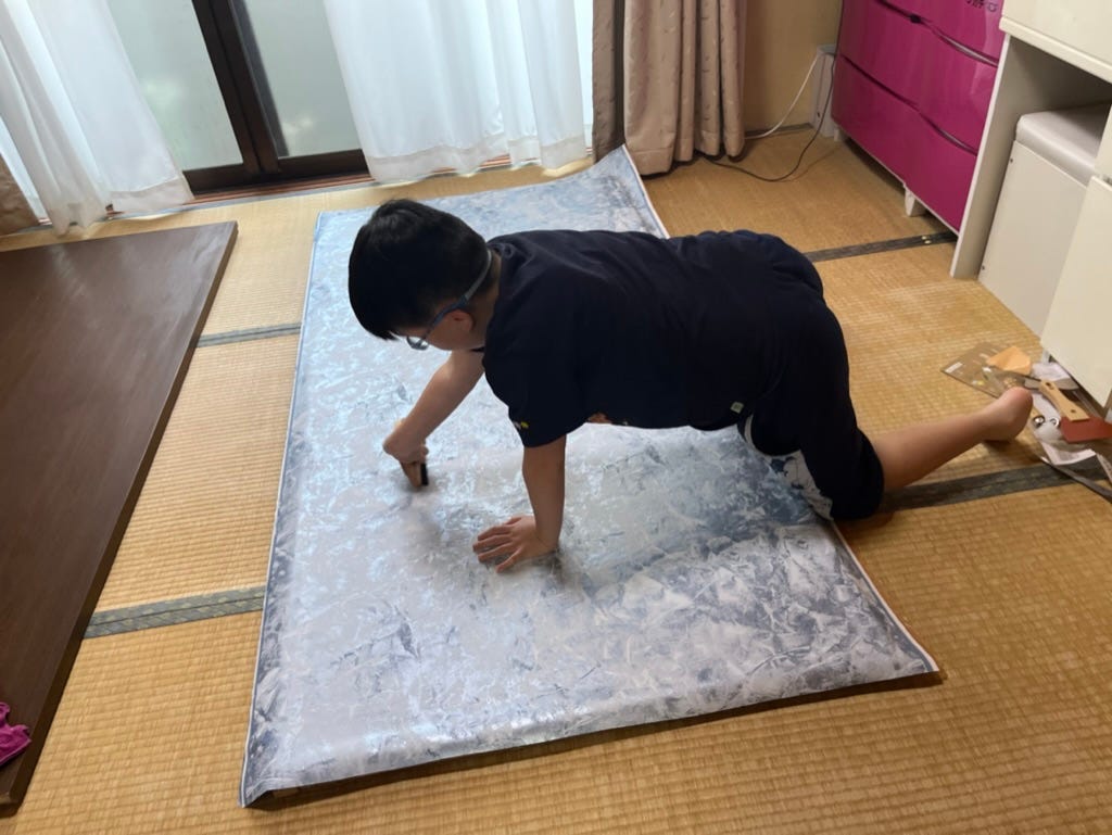 去年は(妻と息子が)和室の改造を行い、ふすまに壁紙を貼ったり、茣蓙を敷いたり。
